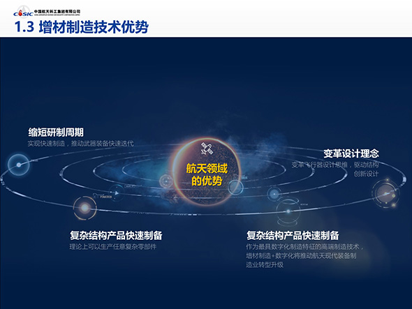 — PPT整體采用藍色作為主色調,藍色具有沉穩的色彩性格,給人可靠的感覺,且與天空的顏色相同,符合PPT的航天主題。封面的分割式圖文編排方式給人穩定的視覺感受,無襯線字體與書法字體的搭配又使版面不至于死氣沉沉