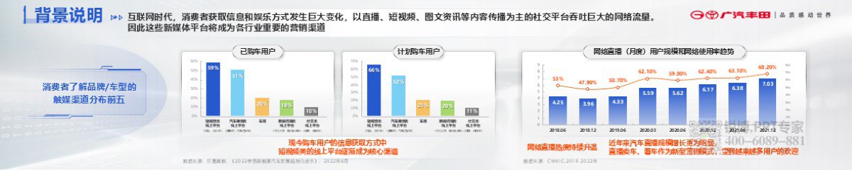 背景元素為簡潔的線條、光影圖案,增添科技氛圍,汽車圖片突出主題,整體設計清晰傳達新媒體營銷體制探索的背景及相關數(shù)據(jù)信息。