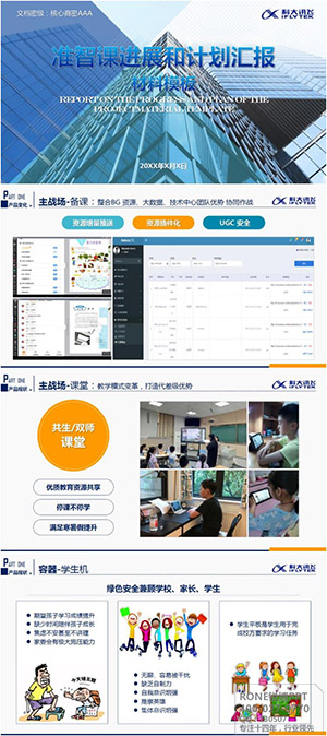 準智課是以教學研發和科技創新為核心的互聯網教育機構,以“給你優質的教育”為發展愿景,致力于解放學生、解放老師、促進教育的公平。銳博PPT這組設計整體采用藍色和橙色為主色調,溫馨時尚而不失科技感。整個風格設計清爽大氣,對顧客能產生較強的吸引力,并且便于客戶瀏覽。