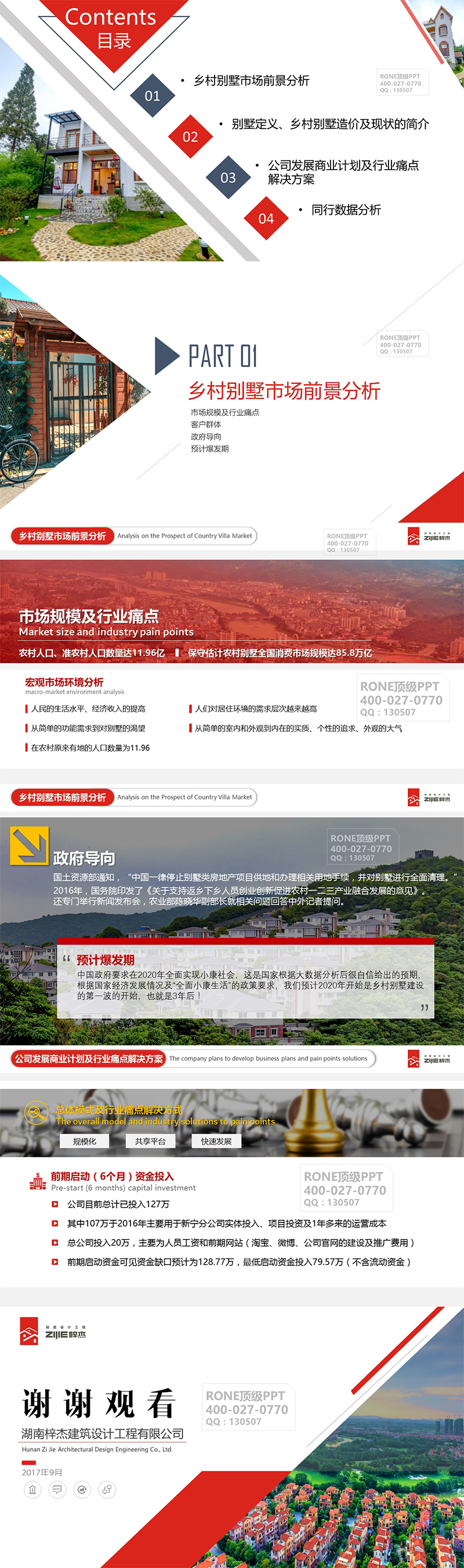 湖南梓杰建筑設(shè)計(jì)工程有限公司是一家房地產(chǎn)開發(fā)/建筑/建材/工程行業(yè)的民營(yíng)企業(yè)公司,自創(chuàng)建以來(lái),始終堅(jiān)持“誠(chéng)信為本、客戶至上、互惠互利,開拓創(chuàng)新”的企業(yè)宗旨。PPT采用紅色為主題色,搭配別墅圖片,給人以大氣的感覺,紅色的色調(diào),體現(xiàn)出企業(yè)蓬勃的生機(jī)與活力