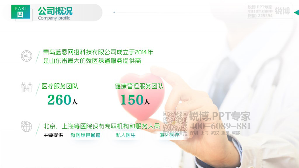— 說明:選用了能給人帶來生機勃勃感受的綠色和白色作為搭配,能給人帶來干凈、明亮又淡雅的感覺,符合品牌藍恩醫療的調性。將文稿中大量的資料通過提取的方式進行新的制作,給觀看者帶來簡潔明了的感受。