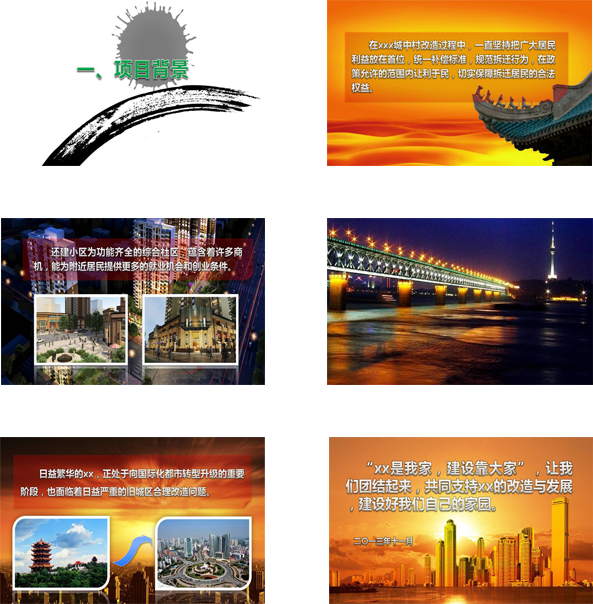 本PPT畫面上具有科技感和時尚元素,很好地體現了項目地產公司的行業屬性;整體結構上,采用了五個簡潔的文字進行描述,雖然是說明式結構,但充滿創意;在質感上采用現代氣息的光影效果,看似簡單,但細節設計到位,華麗而不失大氣,現代而不失穩重;在動畫制作上有較大突破,借鑒電子畫冊、flash、3D視頻的動畫效果,但保留了PPT動畫的特色——邏輯清晰、動作連貫、自動手動任意切換,創意很有商務氣息。