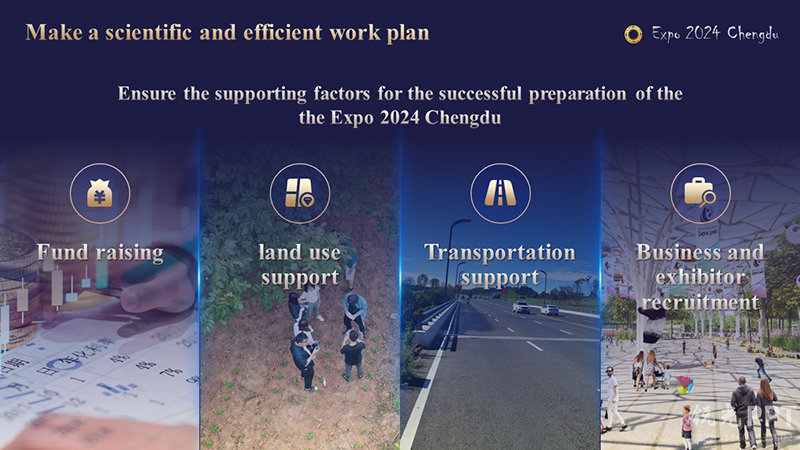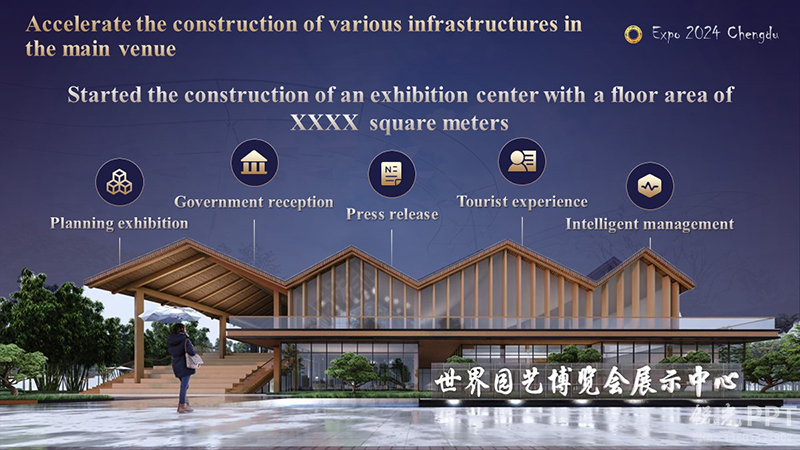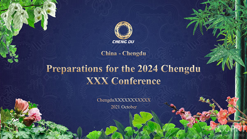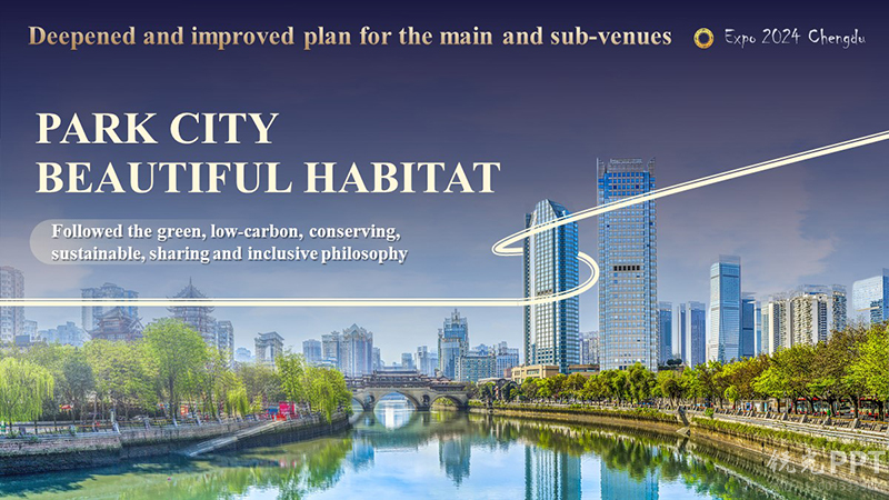 世園會成都市政府匯報采用了深藍色和金色的搭配,打造了