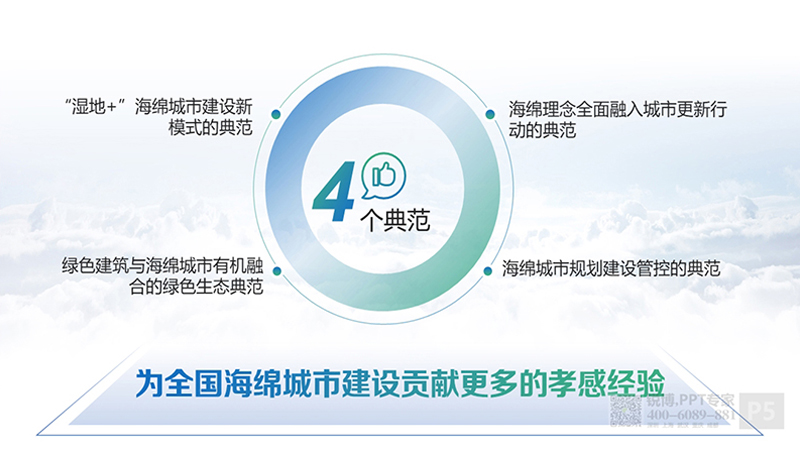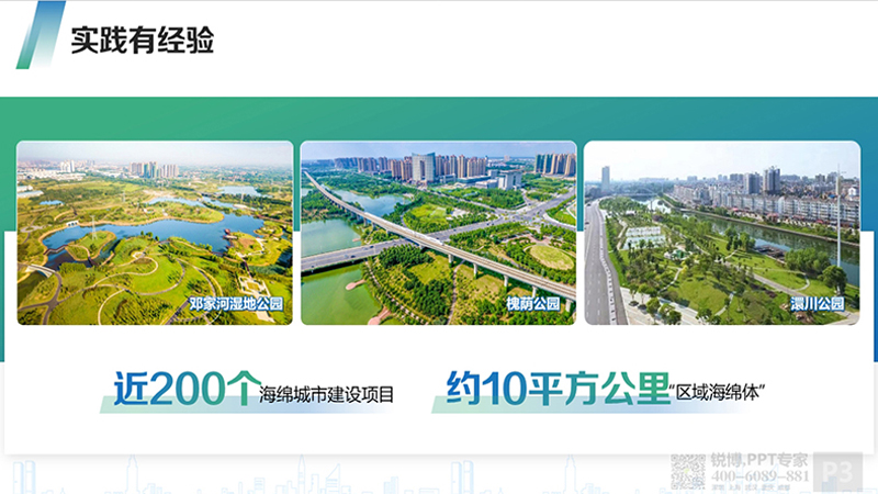 PPT整體采用藍綠漸變的色調,搭配白底,版面清新自然,